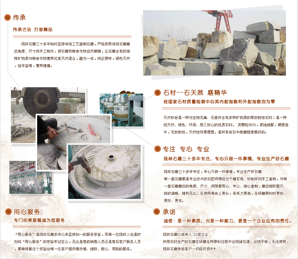 • 石磨豆?jié){機(jī)特點(diǎn) 電動(dòng)石磨豆?jié){機(jī)廠 家現(xiàn)林石磨品質(zhì)有保證 • 全自動(dòng)石磨面粉機(jī) 買石磨面粉機(jī)就選山東現(xiàn)林 • 香油石磨廠家直銷 電動(dòng)香油石磨機(jī) 現(xiàn)林石磨業(yè)內(nèi)口碑好 • 傳統(tǒng)小磨香油工藝 • 傳承石磨文化,打造健康理念,現(xiàn)林石磨做石磨行業(yè)領(lǐng)導(dǎo)品牌 • 又見石磨,又聞麥香,現(xiàn)林石磨! |